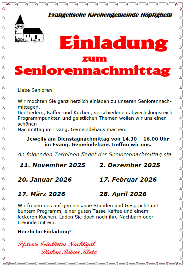 Die aktuellen kirchlichen Nachrichten enthalten Termine und wichtige Informationen für die kommenden Wochen. Sie können sie über folgenden Link abrufen: Kirchliche Nachrichten (PDF)